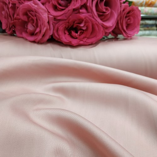 Сатин - это хлопковая ткань сатинового переплетения. Для его производства используют сильно крученые хлопковые нити двойного плетения. Более плотную для основы и тонкую крученную – для лицевой стороны. На четыре нити основы приходится одна с лицевой. Нити переплетены очень плотно, ткань дает усадку еще в процессе производства, что позволяет ей сохранять форму длительное время, не деформируясь. Сатин отличается от полотняного переплетения удлиненными перекрытиями нитей по лицевой поверхности. Лицевая сторона при этом получается гладкая, а изнаночная – шероховатая и плотная. Блеск ткани обеспечивается крученой нитью: чем сильнее нить скручена, тем ярче блеск.